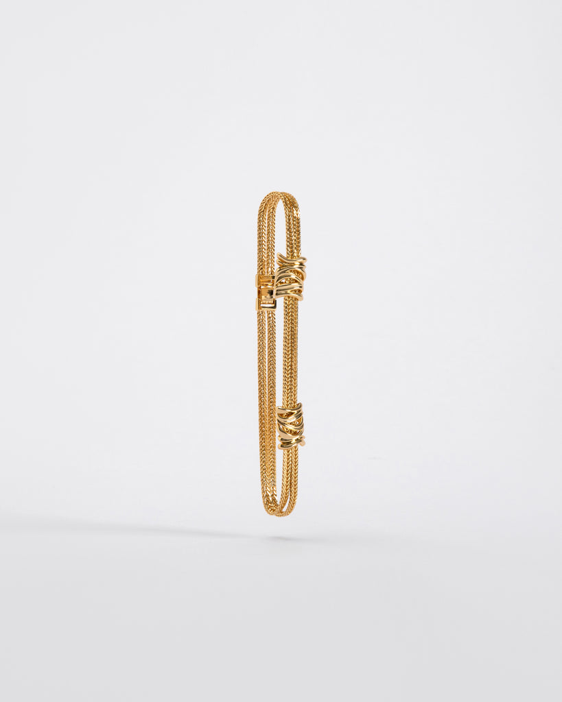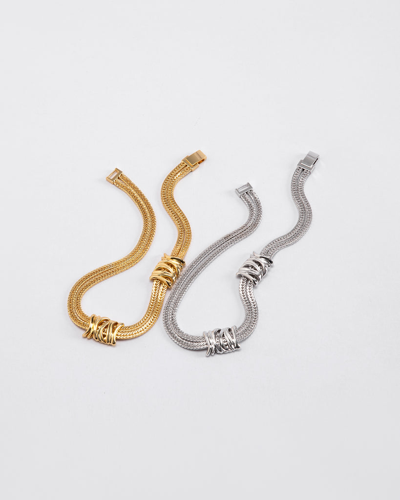 The Dance Loop Necklace continues the “Rhythmic Loops” motif, alternating polished silver loops and chain links. The central twisted loop is artfully refined to evoke musical notes dancing along your neckline. Bold chain links on one side contrast with delicate loops on the other. A five-position extender offers styling versatility—from a close-fit choker to a relaxed mid-length drape.