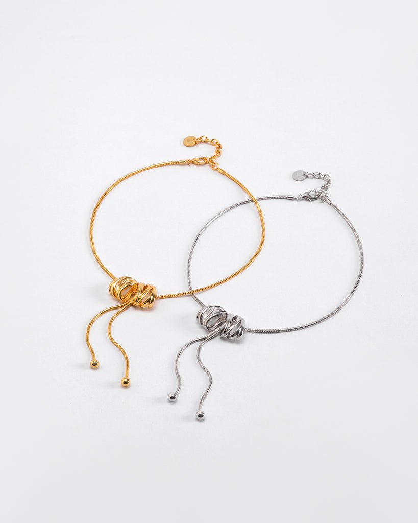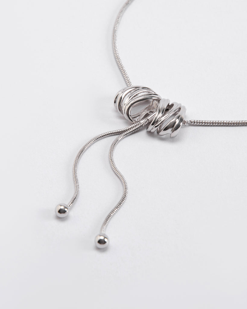 The Halo Tassel Necklace is built on a sleek white gold-tone snake chain, featuring a focal cluster of interlocking rings in varied sizes to evoke a continuous link motif. Dual tassel chains dangle delicately, swaying with movement to impart a sense of fluid dynamism. An adjustable clasp with five extension settings allows custom styling—from close-to-neck chic to a looser, mid-length drape