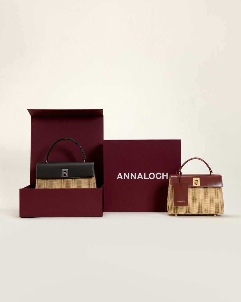 The Marie 28 Haute Rattan reimagines ANNALOCH's signature top-handle silhouette through the art of fine handwoven rattan.
