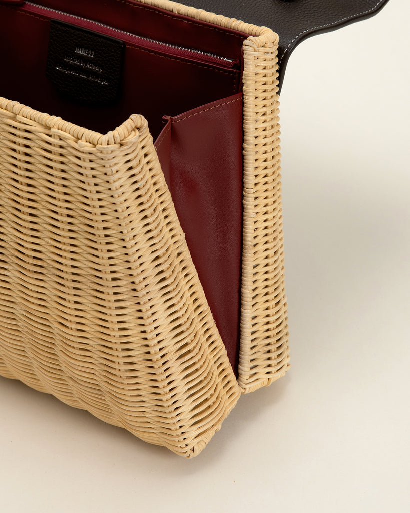 The Marie 28 Haute Rattan reimagines ANNALOCH's signature top-handle silhouette through the art of fine handwoven rattan.